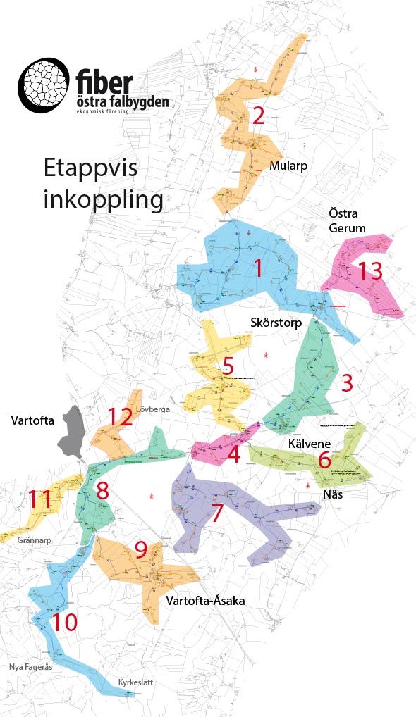 Nedan visas den etappkarta som upprättats (2013-10-11) inför inkoppling av nätet.